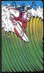 The one on the right is definately a frame from an old Rick Griffin comic strip. He did a lot of early surf mag art in the 60's, and he also did a lot of trippy album covers in the 70's and some amazing paintings and illustrations. He died on PCH in a motorcycle accident, traveling up the coast to recon some mysto spots, I hear.