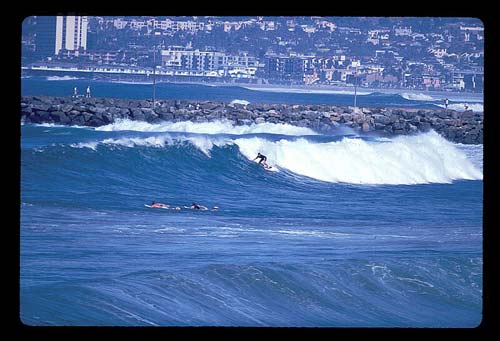 9. & 10. Ocean Beach October & November madness. Surfed a couple strings of day after day and just beat. Exceptionally fun and hollow head high surf, off shore winds, relatively light crowds and one wave that stands out in memory; it sucked up and went perfectly vertical while the shoulder ahead of me suddenly went perpendicular to the wave face!? I ended on a flying kick out, landing flat on my back from such a height that I wondered as I fell why I hadn't hit the water yet. Subsequently I was recognized in the parking lot as the flying guy by a nice older gentleman watching the wave orgy. Go figure. Surfed many days alone and with Pete, Jeff, Dave and Peter.
