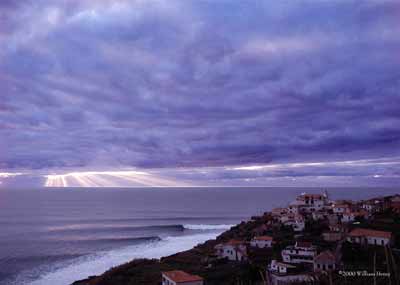 4. Unnamed reef break, Puerto Rico. Again alone, entering the water by light of the setting full moon to find the ocean warmer than the already balmy air. The paddle to the break was maybe three-quarters of a mile and the view to the shore was of empty tropical coastline, no buildings, the road kept close by foliage. The surf a powerful seven foot, lefts and rights, glassy as an oil spill. So what if I had to answer the call of the "traveler’s malady" in the line up? The tide was outbound and there were more waves on the way for me!